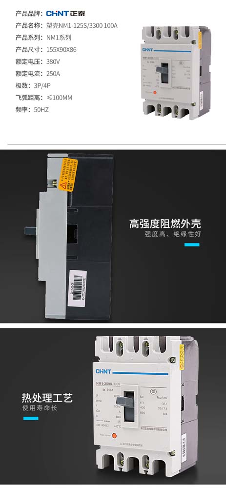 正泰CHNT 塑壳断路器 空气开关 NM1-125S/3300(16A、20A、25A、32A、40A、63A、100A、125A ) 塑壳断路器