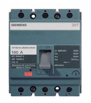 西门子 SIEMENS 3VT8 160A 35KA 热磁式 MF 100A 3P 固定式 板前接线 手动 LI 400VAC 3VT82101CA030AA0