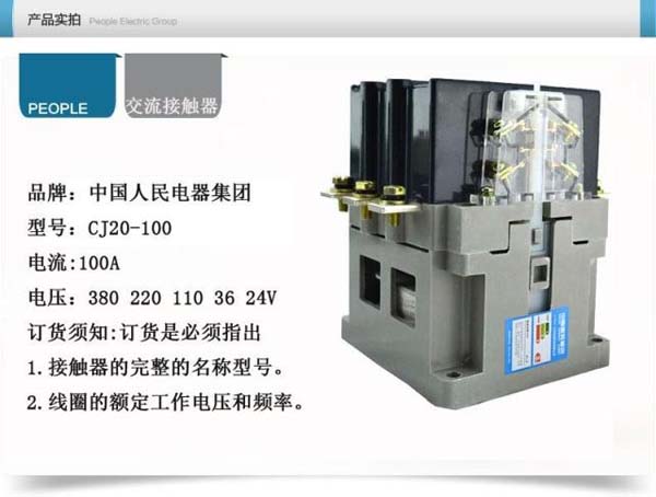 中国人民电器集团 PEOPLE CJ20-100A交流接触器