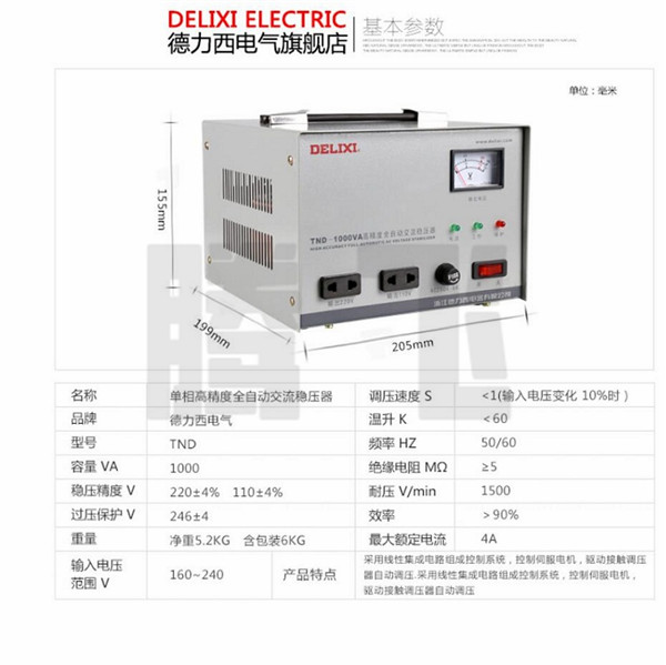 德力西 TND-5000 单相交流稳压器5K(单相) (计价单位:只)