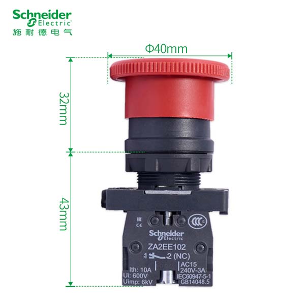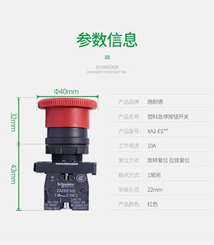 施耐德 SchneideΦ60急停开关(旋转复位) 红 1NC;XA2ES642