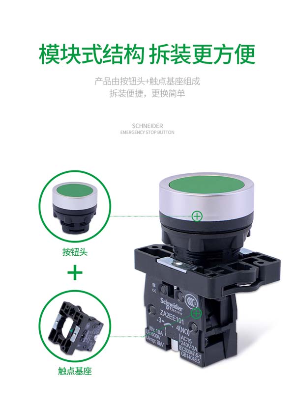 施耐德电气 Schneide rXA2 绿色 塑料 按钮 XA2EA31 平头按钮