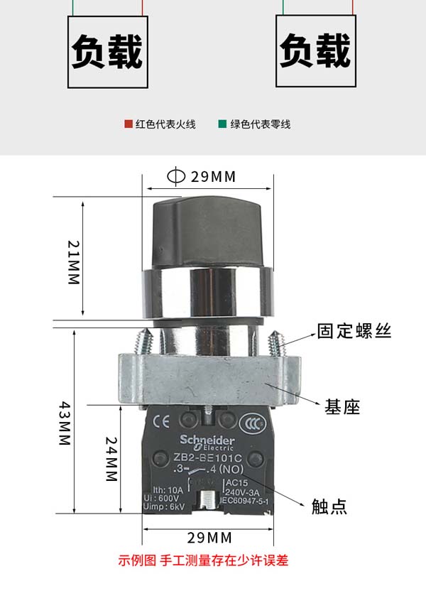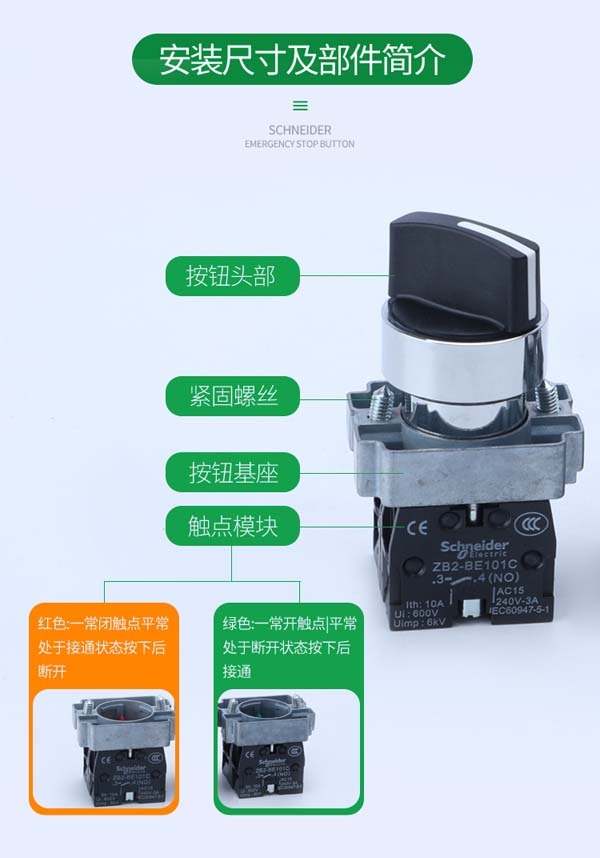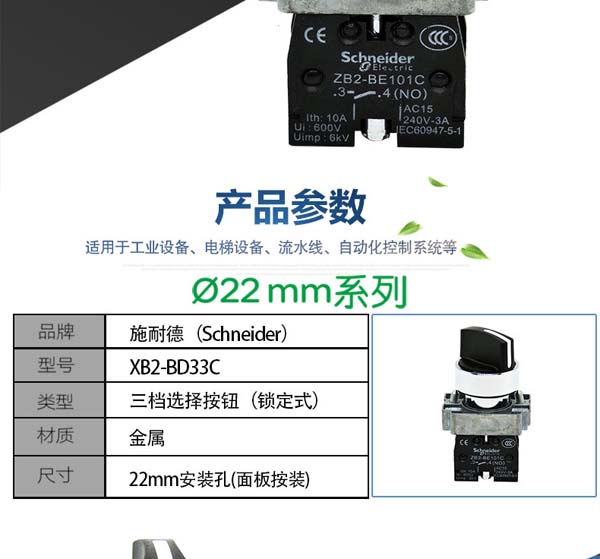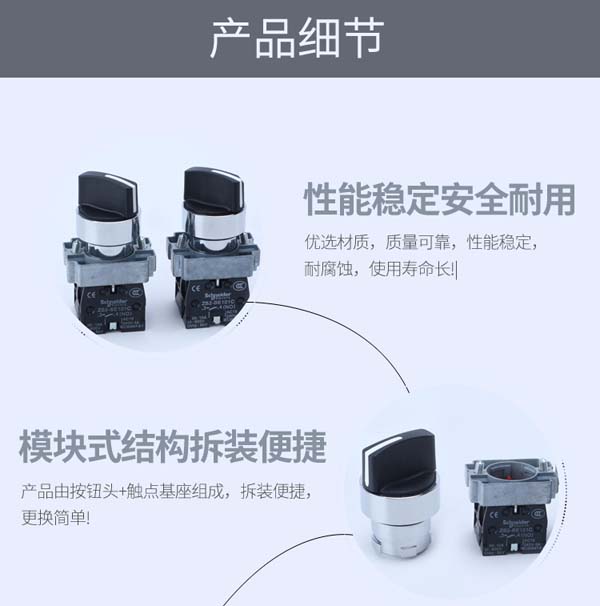 施耐德电气 SchneideXB2B 短手柄 手柄开关 自锁型 XB2BD33C 选择开关