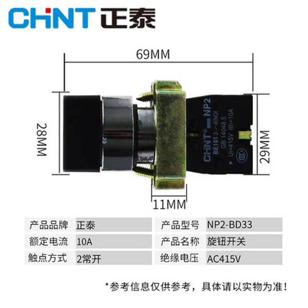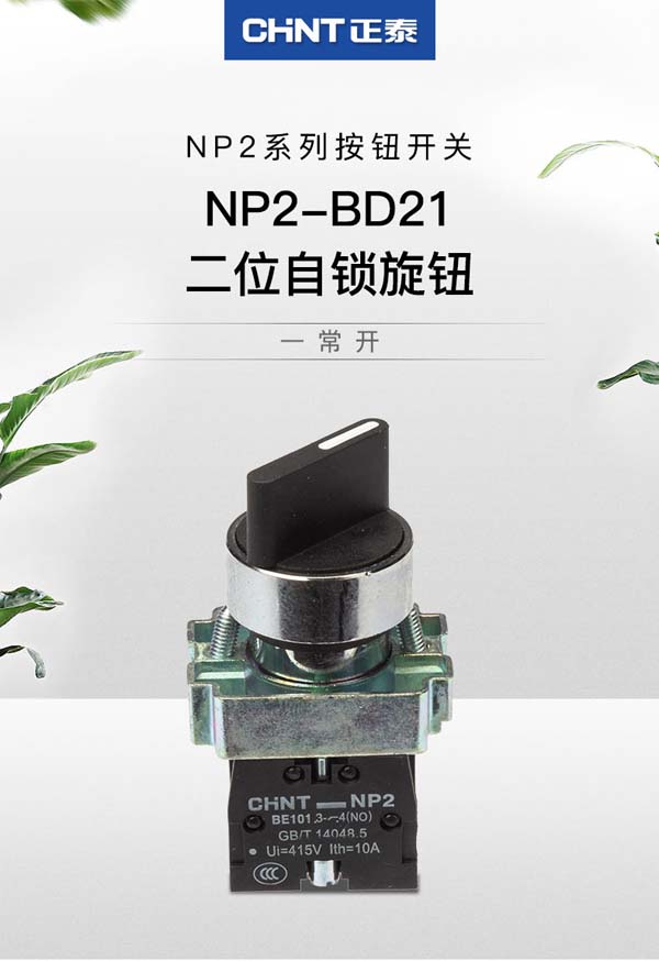正泰CHNT 按钮NP2-BD25一常开一常闭22mm二位锁定自锁二档旋钮开关 NP2-BD25