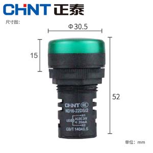 正泰 LED指示灯ND16-22DS/4 22mm信号灯绿色AC220V380V ND16-22DS/4 AC 220V380V 绿