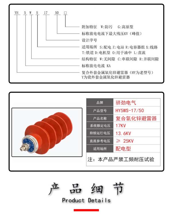 陉阳驿复合外套绝缘金属氧化锌避雷器YH5WS-1750