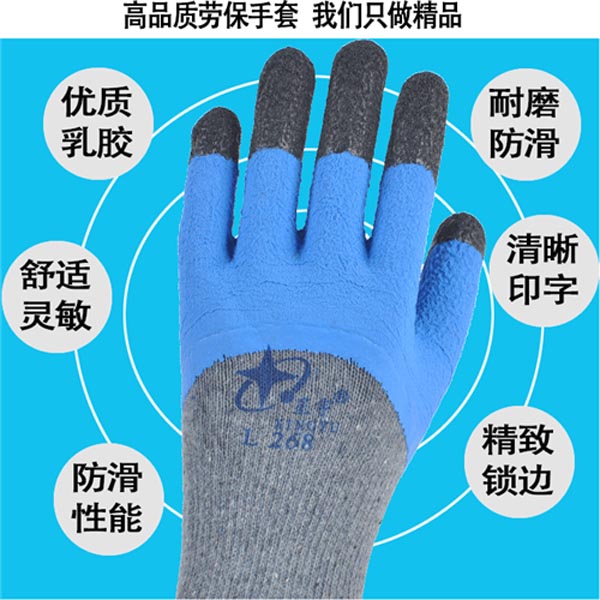 星宇 XINGYU 线手套 L268 起泡胶手套蓝色浸胶挂胶耐磨防滑保暖乳胶发泡劳保手套12副
