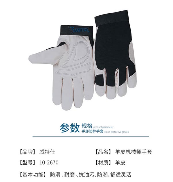 威特仕 10-2670 机械师手套有抗油防潮赛车手手套舒适灵活白色 1副