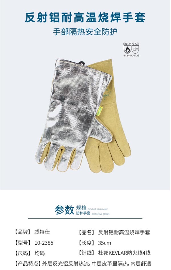 威特仕 10-2385电焊手套牛皮烧焊气焊焊工手套定做劳保工业防护手套 10-2385 1副