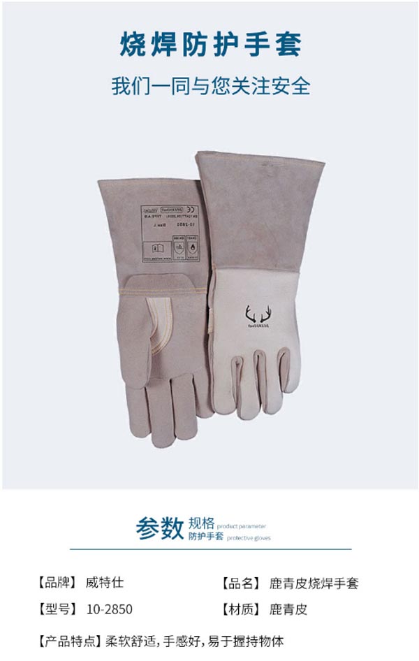 威特仕 10-2850 鹿青皮烧焊手套 定做电焊手套 1副