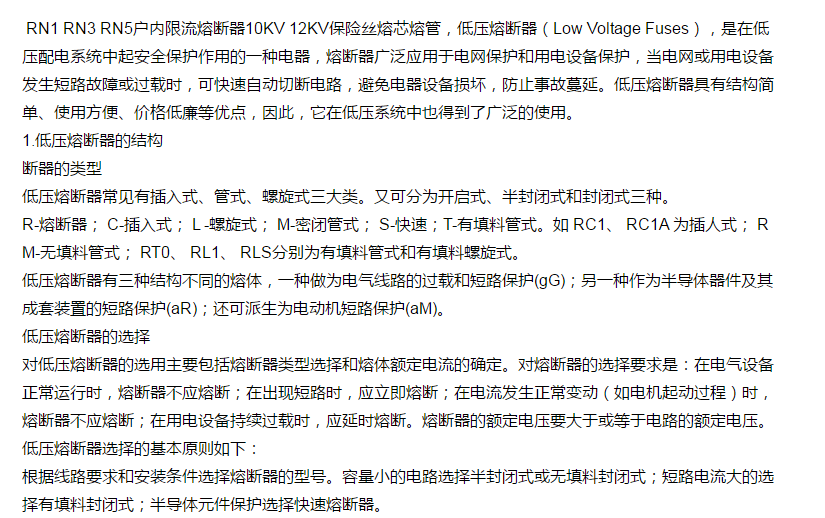 熔丝管,10KV, 0.5A 10A,RN3,人民电器