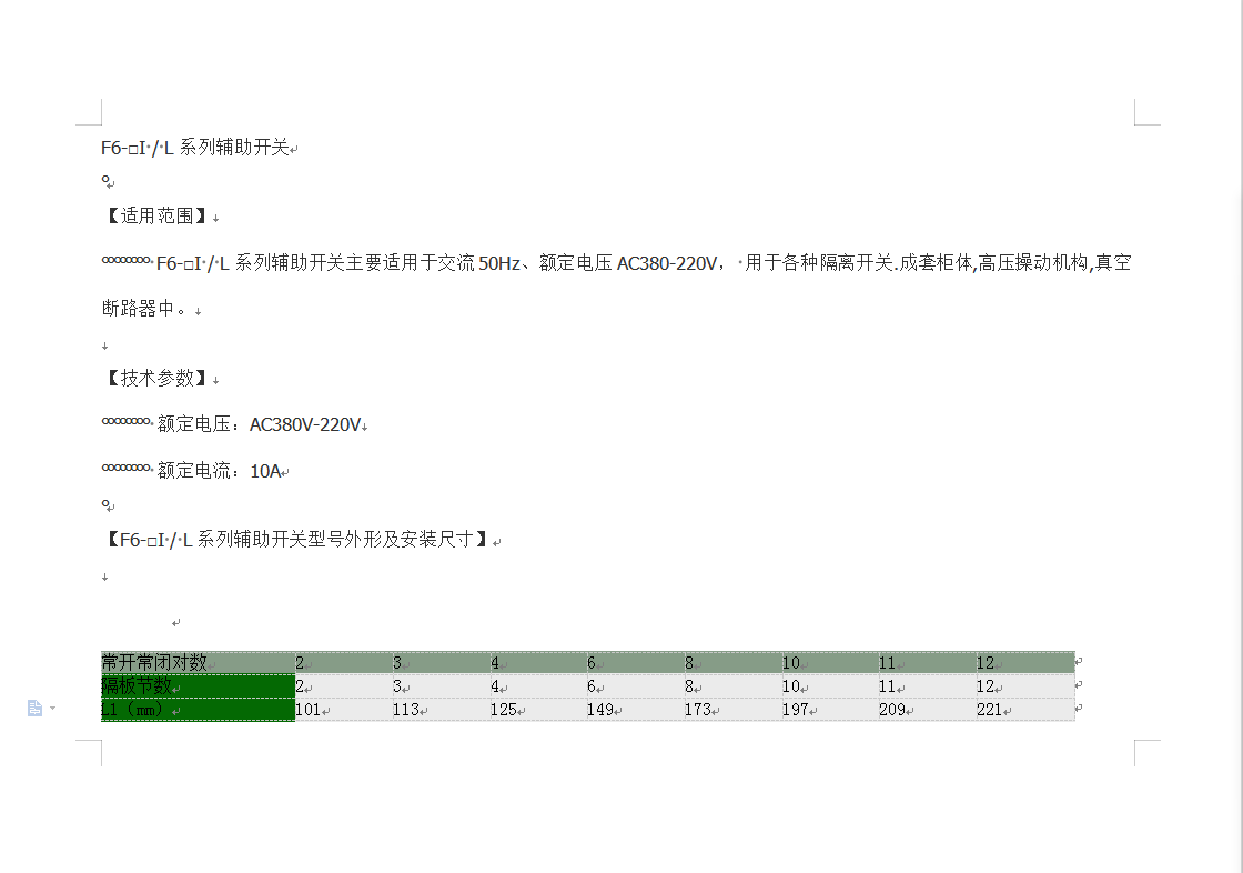 辅助开关,AC220,F6-20Ⅱ,WBS,HTD,上海华东电器