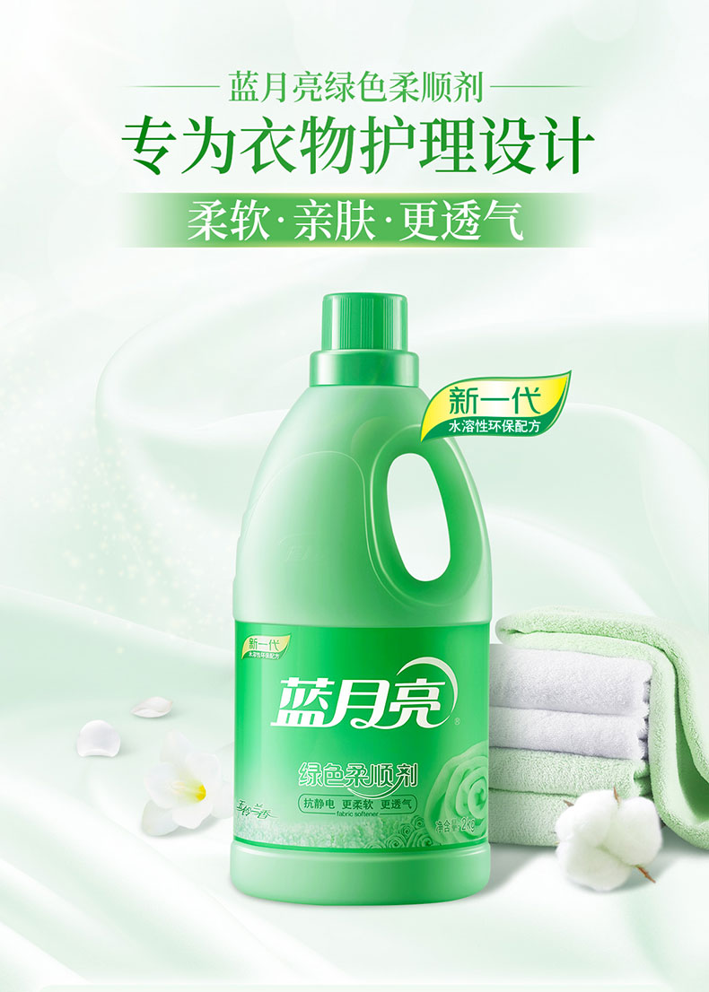 蓝月亮 柔顺剂 玉铃兰绿色柔顺剂 蓝月亮绿色柔顺剂2kg 衣物护理柔软透气防静电玉铃兰香