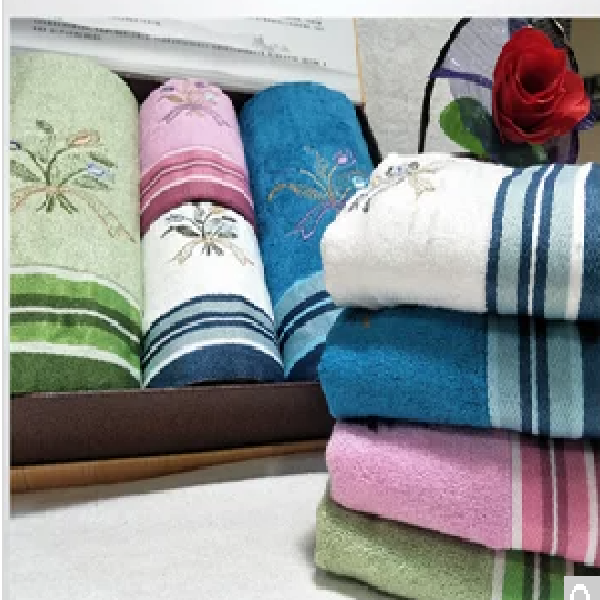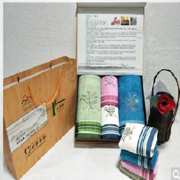 咏竹缘 竹纤维绣花大毛巾+浴巾 毛巾+浴巾 毛巾34*76cm.浴巾70*140cm一盒3条