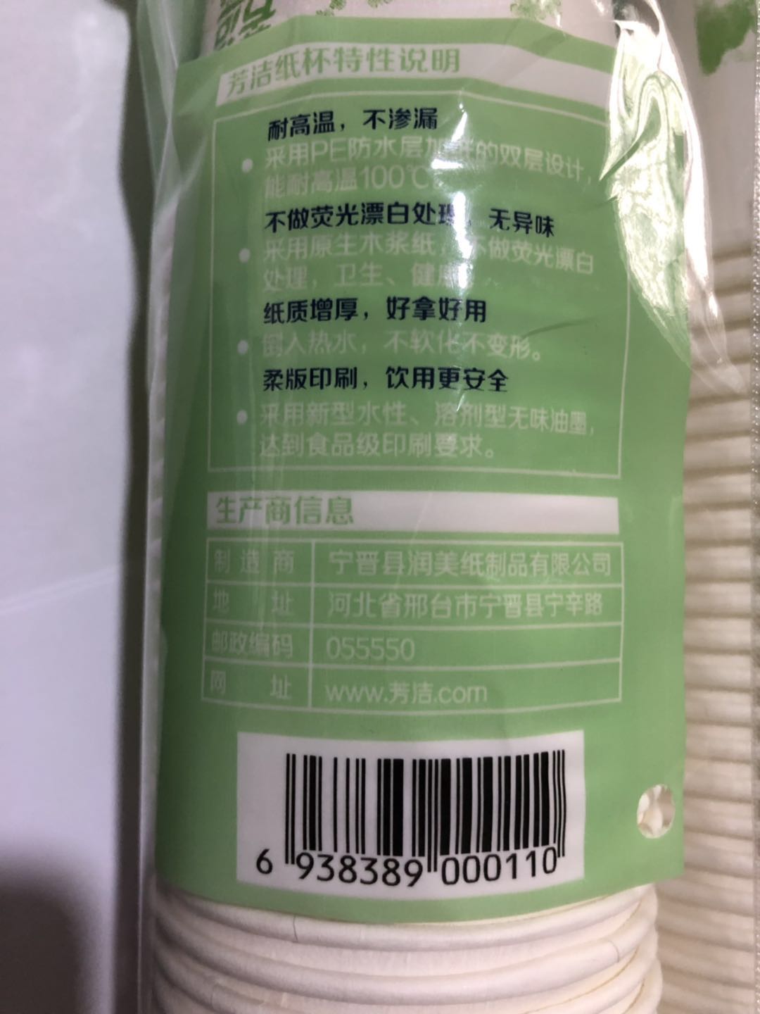 芳洁 一次性纸杯FJ-0004 加厚一次性纸杯环保家用商务办公茶水杯子50只纸杯
