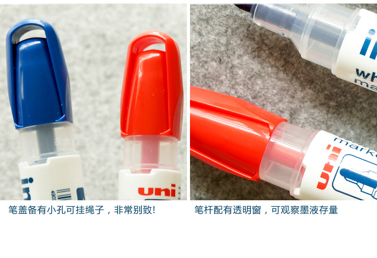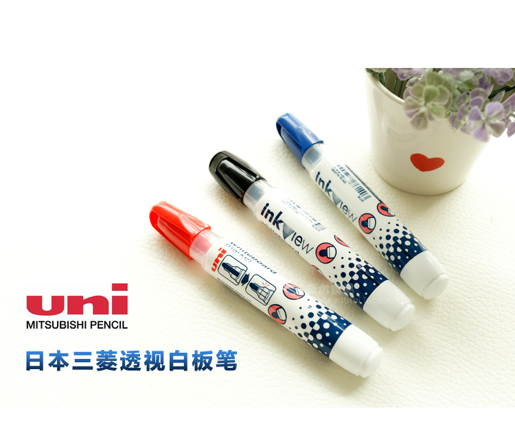 三菱透视白板笔 擦除不留痕圆头白板书写笔红黑蓝绿