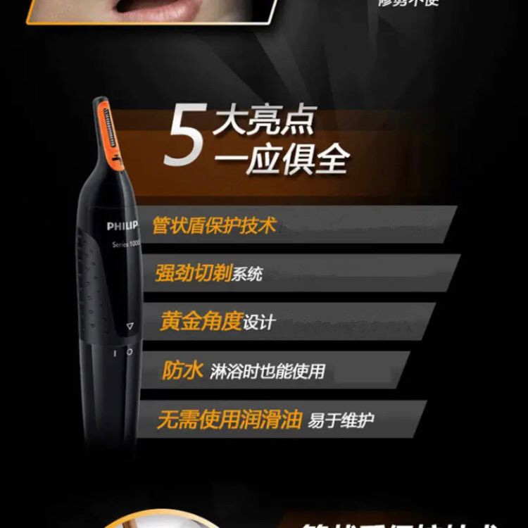 飞利浦鼻毛修剪器男用NT5175修鼻毛清理器胡须男士剪剃鼻毛器剪刀