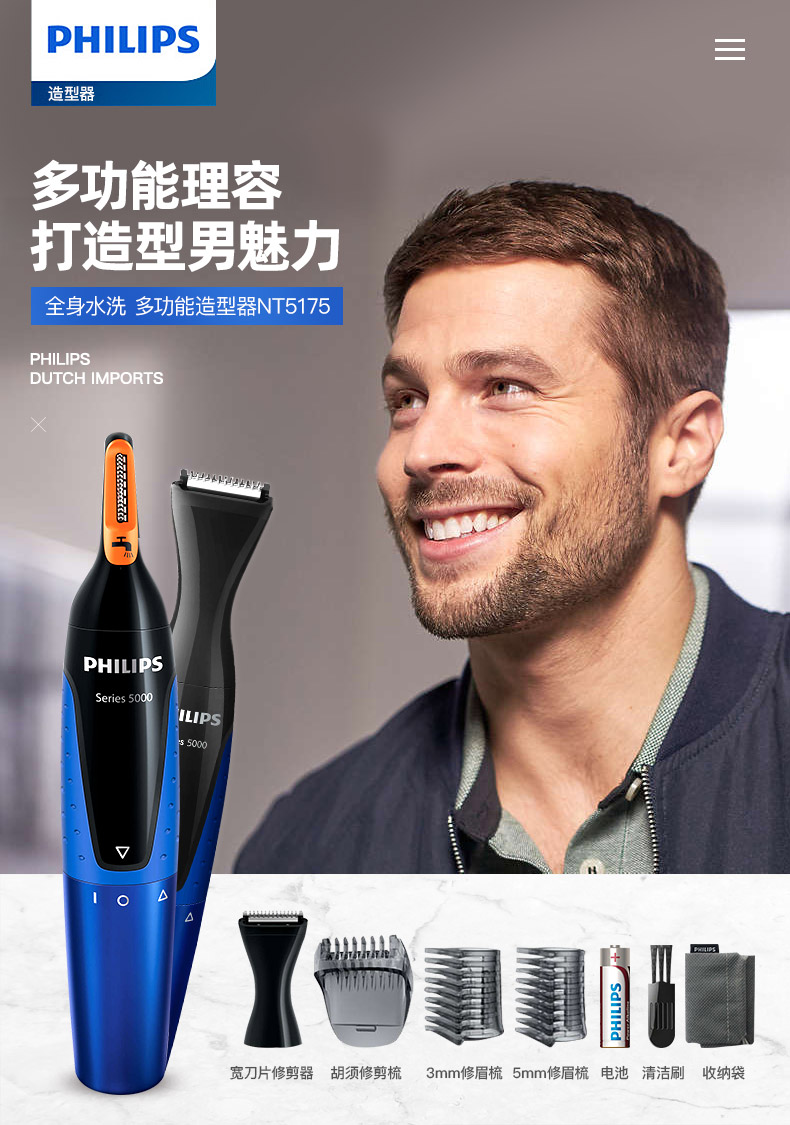 飞利浦鼻毛修剪器男用NT5175修鼻毛清理器胡须男士剪剃鼻毛器剪刀