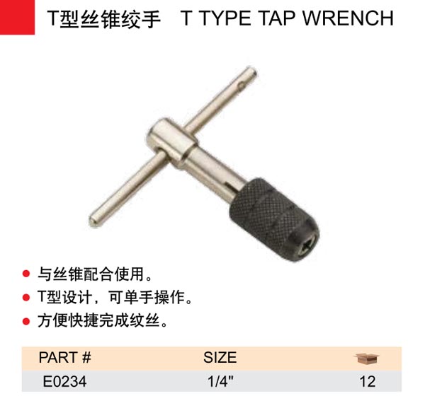 ENDURA 力易得手动工具E0234 T型丝锥绞手1/4寸手用丝锥扳手