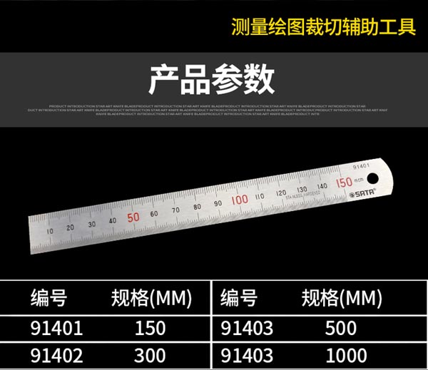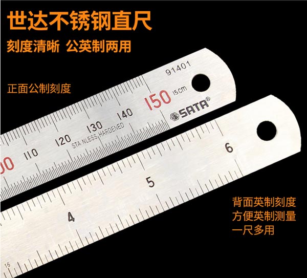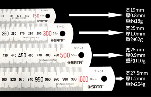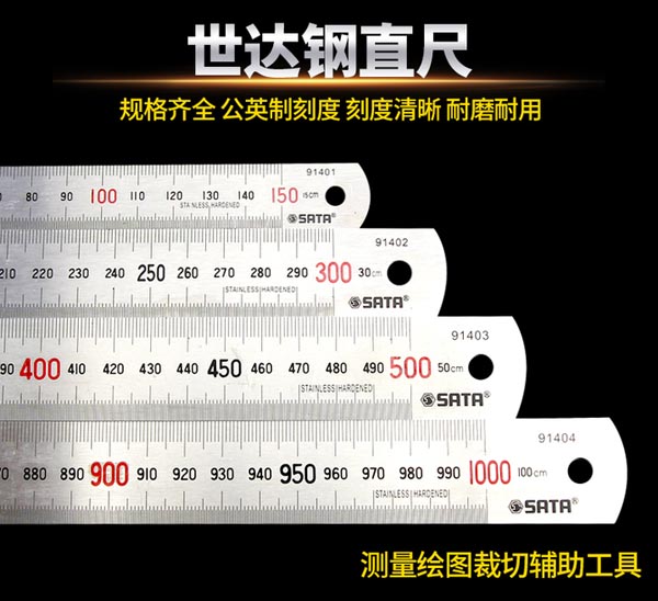 世达(SATA) 钢直尺 板尺 不锈钢直尺钢板尺 公制绘图钢尺双面刻度钢板尺 钢板尺91401/91402/91403