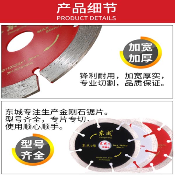 东成 电动石材切割机锯片 金刚石切割片石材陶瓷切割专用110切割机云石片锯片电动工具
