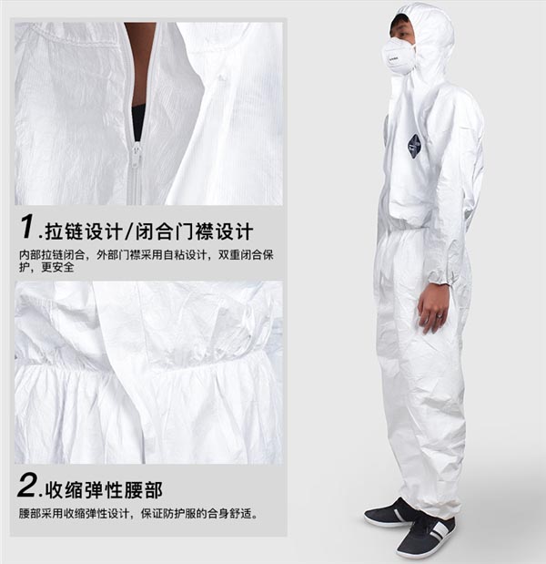 杜邦 防护服1422A 尺码:S、M、L、XL、XXL 防静电工作服喷漆防化连体带帽无尘透气衣服白色