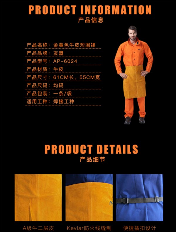 威特仕 WELDAS围腰 44-7124 蛮牛王无护胸围裙 61CM可调节长度牛皮电焊围裙 1条