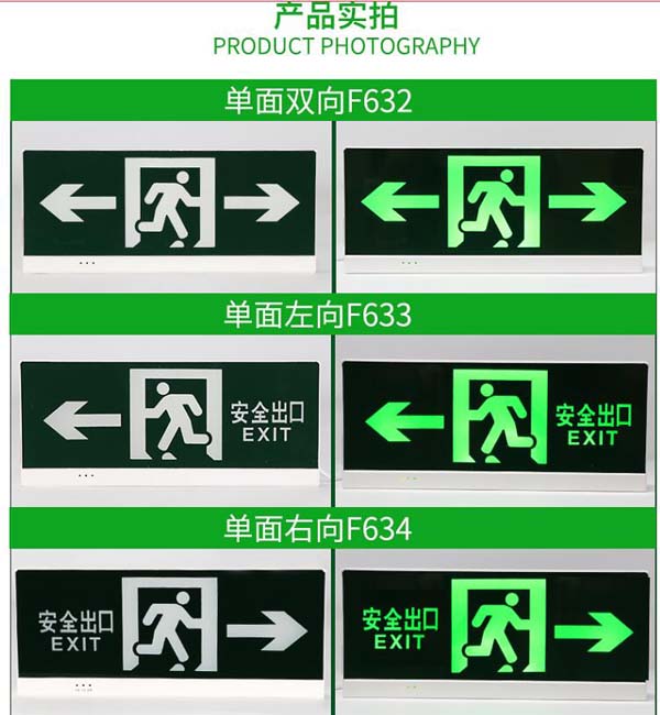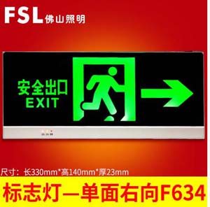佛山照明FSL 新国标安全出口指示牌消防紧急通道疏散标志灯led应急灯 单面右向F634