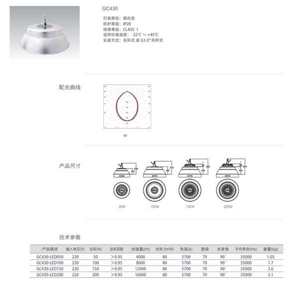 亚明LED工矿灯厂房吊灯瓦大功率工厂照明GC430 工矿灯 工作灯