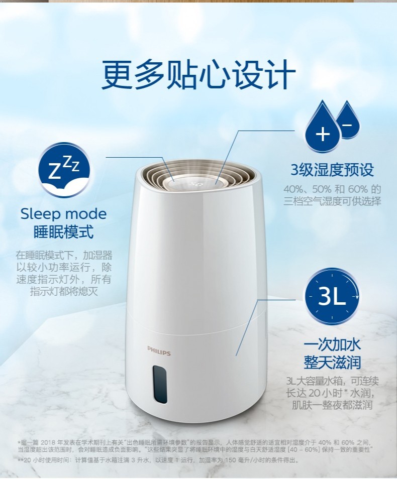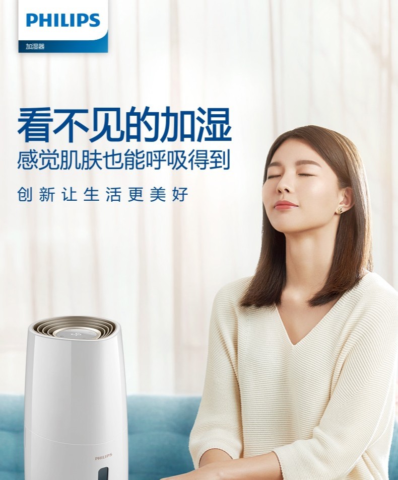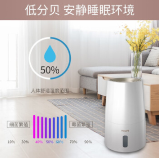 飞利浦(PHILIPS)加湿器 上加水 自动湿度设置 纳米无雾恒湿 静音卧室办公室家用空气加湿 HU3915/00