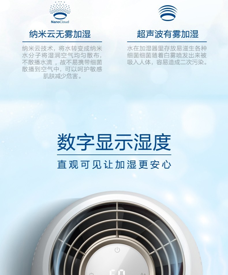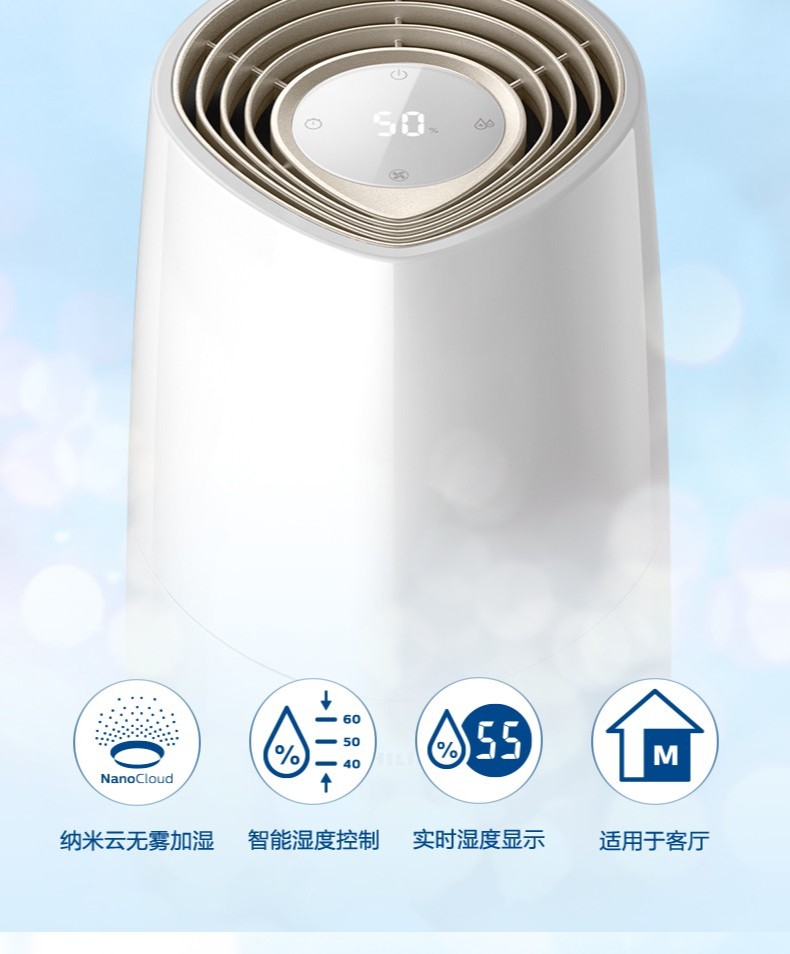 飞利浦(PHILIPS) 加湿器 上加水 纳米无雾恒湿 静音办公室卧室家用加湿 牡蛎金HU4803/00带数显-220ml/h