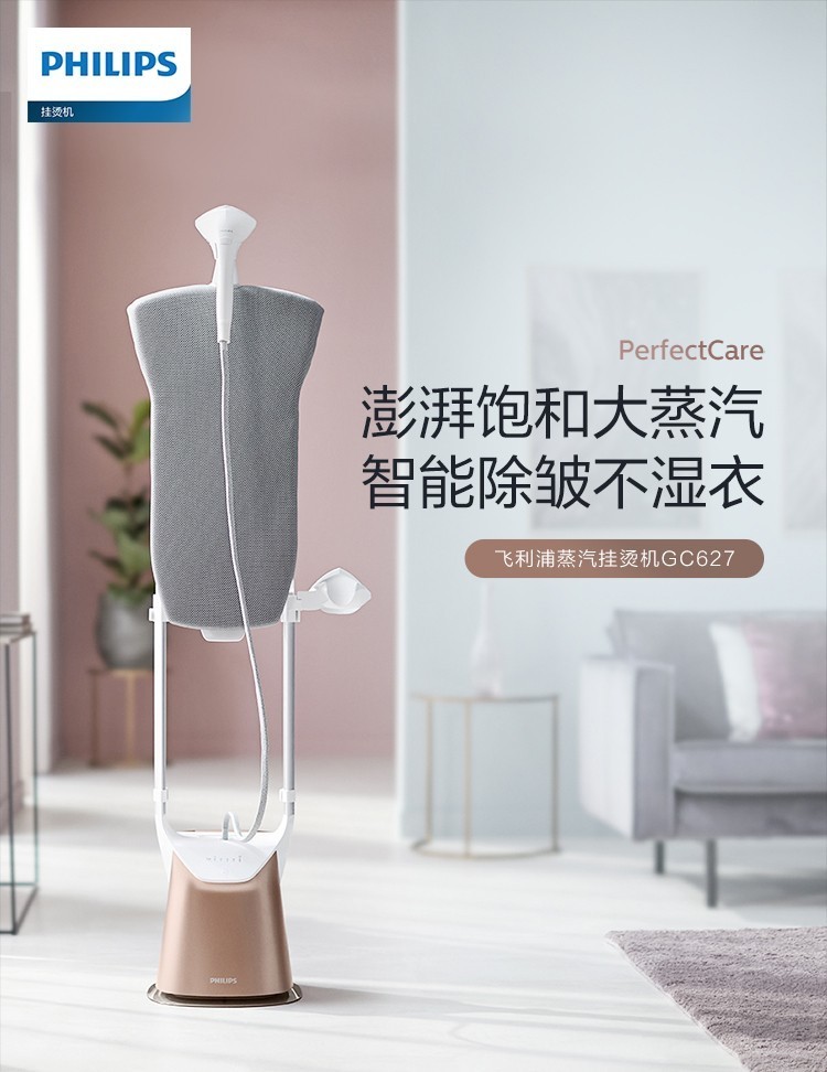 飞利浦 (PHILIPS) 蒸汽挂烫机 家用手持挂式电熨斗双杆带烫衣板 2200W三档调节熨衣 GC627/68