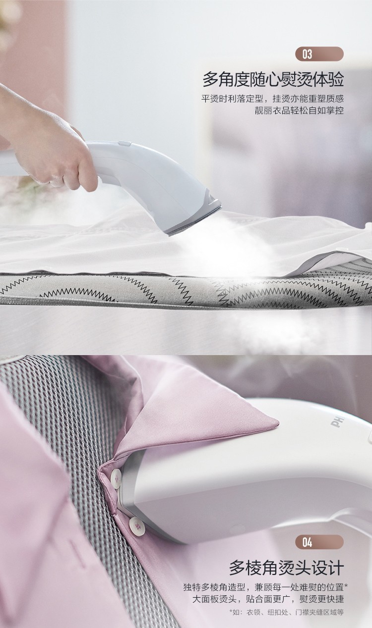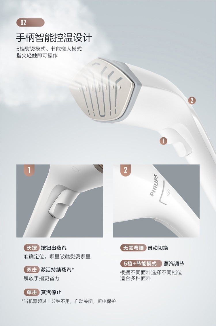 飞利浦 (PHILIPS) 智能增压熨烫蒸汽电熨斗 家用挂烫机 平熨挂烫二合一 手持迷你家用GC7808/48