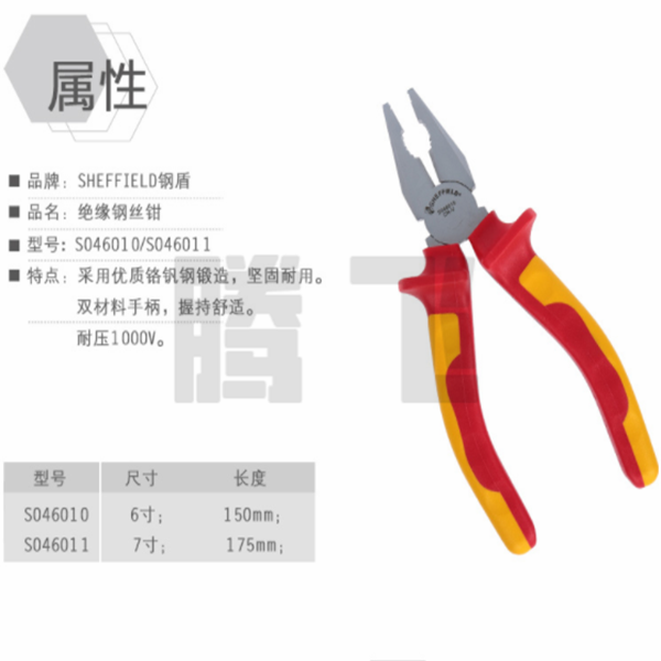 钢盾(SHEFFIELD) S046011 7"/ S046010 6" 绝缘钢丝钳
