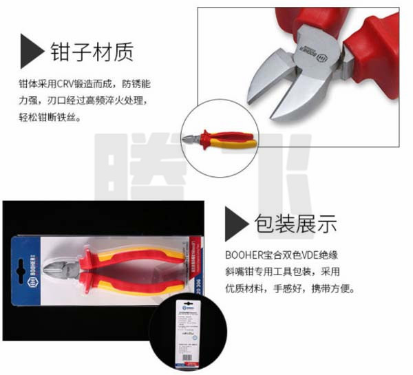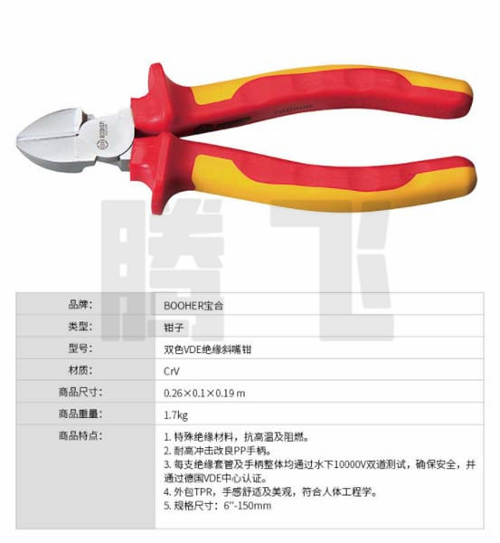 BOOHER宝合 0260306 浸塑型VDE绝缘斜嘴钳6寸