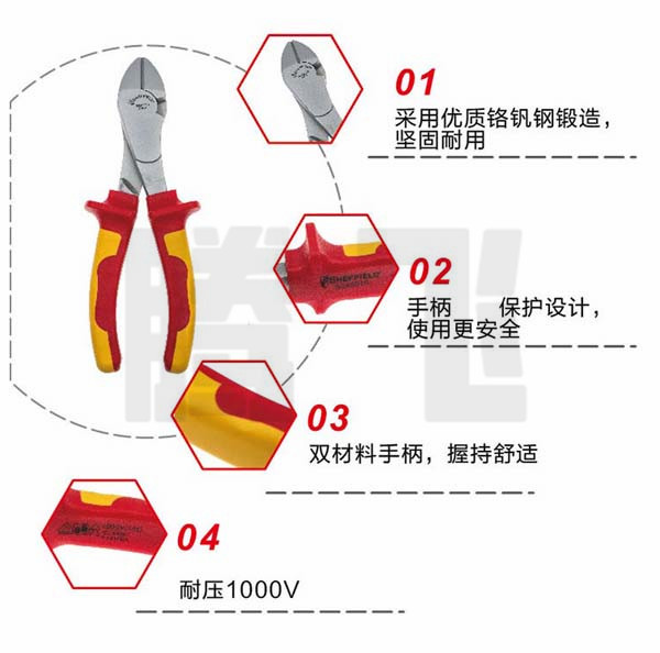 钢盾(SHEFFIELD) S046016 斜口钳7吋绝缘 绝缘斜嘴钳