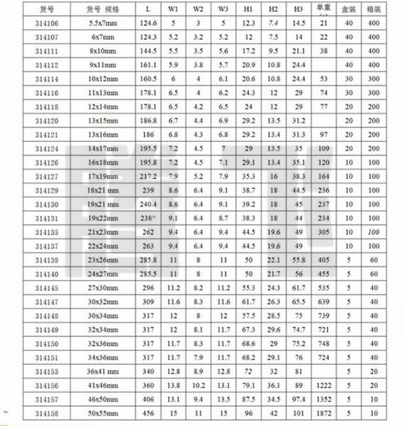 • 扳手规格: