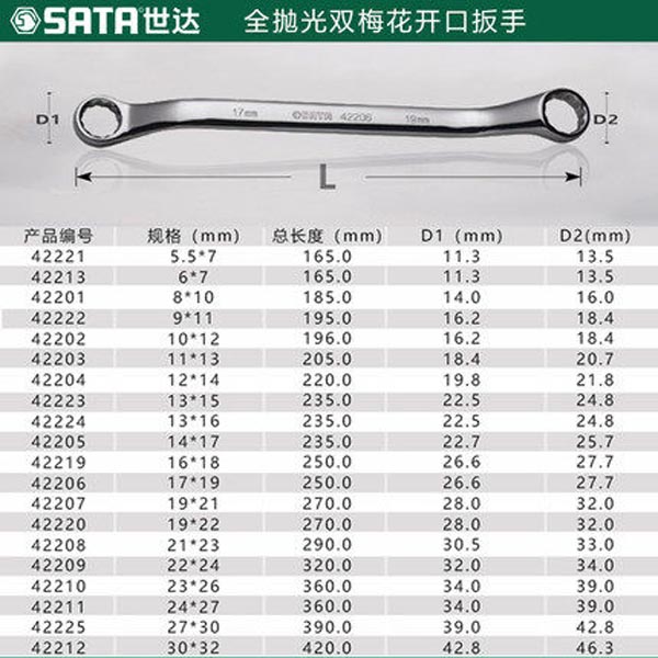 世达 Sata 全抛光双向活口快扳梅花开口两用扳手19*21MM 42207-42212