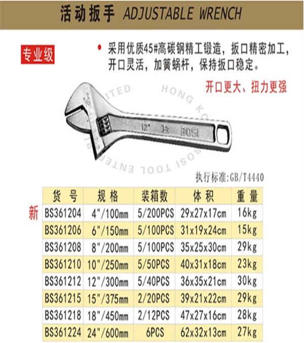 波斯五金工具活动扳手快速开口扳手