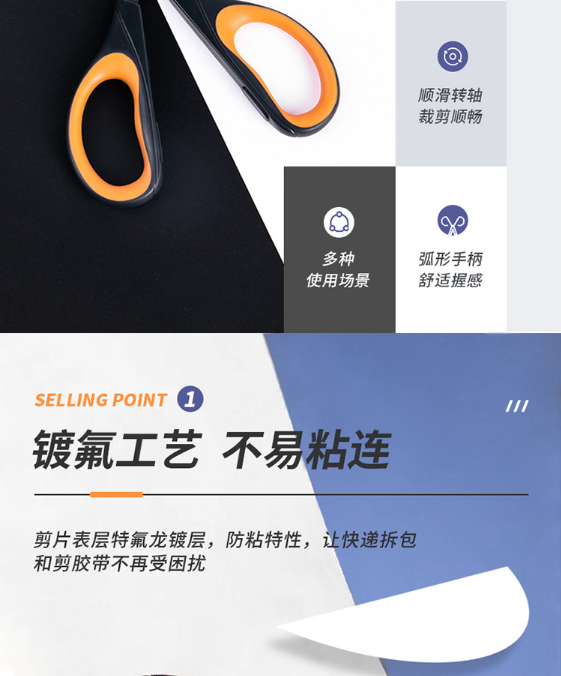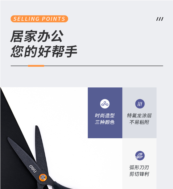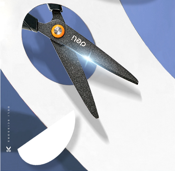 得力(deli)特氟龙材质防粘不锈钢剪刀 橙色6055