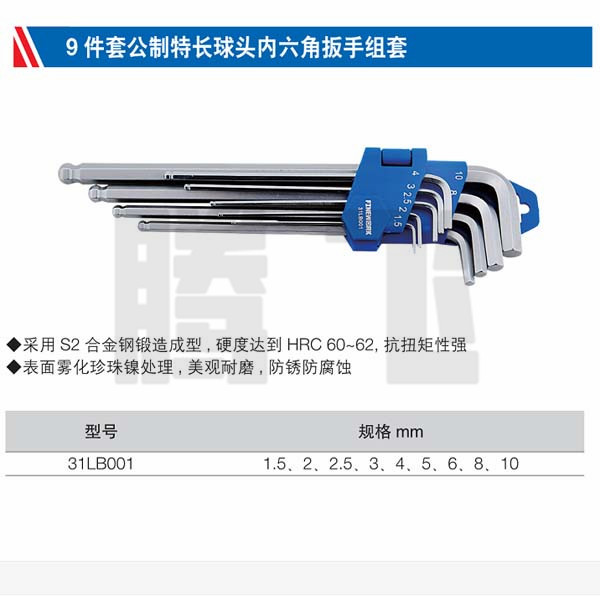 泛沃克 31LB001 9件套球头特长内六角1.5-10mm