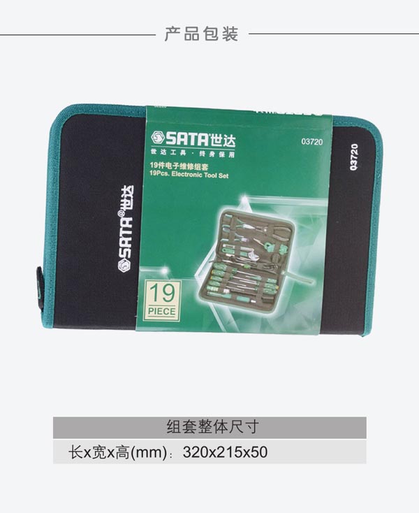 世达 Sata 组合工具19件日常家用维修工具箱电工螺丝刀电烙铁组合套装 03720