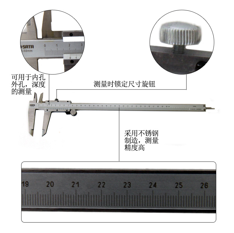 世达 Sata 不锈钢机械深度尺量具游标卡尺0-150MM 91501 /91502 测量精度高 可用于内孔、外圆、深度的测量