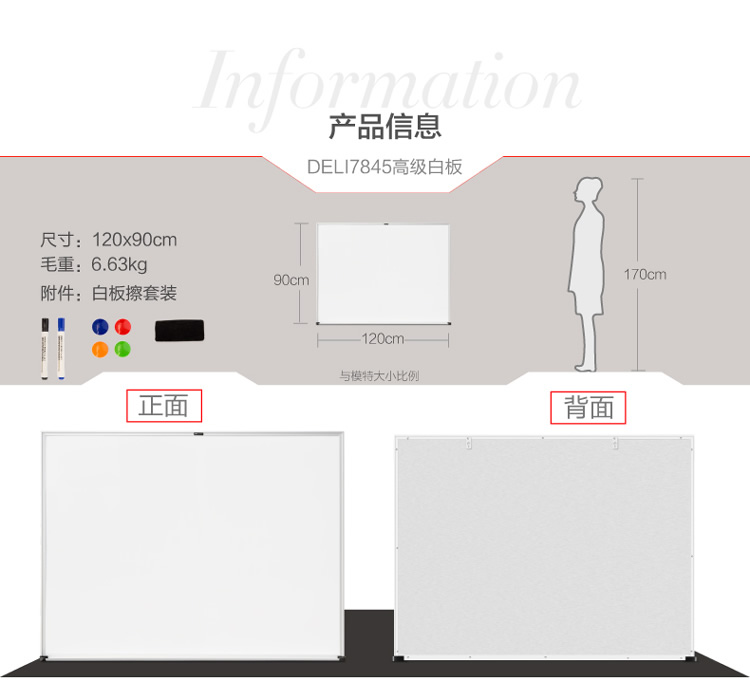 得力磁性白板100200cm送板擦磁钉笔得力7868内置钢板