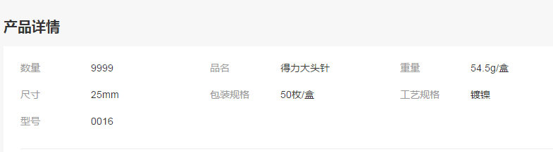 得力金属回形针0016办公加厚电镀表层曲别针彩色回形针学生手工文具彩色工字钉大头针组合三针一钉