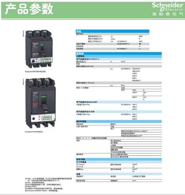 施耐德 Schneider塑壳断路器 带热磁脱扣单元 NSX100F TM16D 3P 3D 16/25/32/40/63/80/100/125/160A 固
