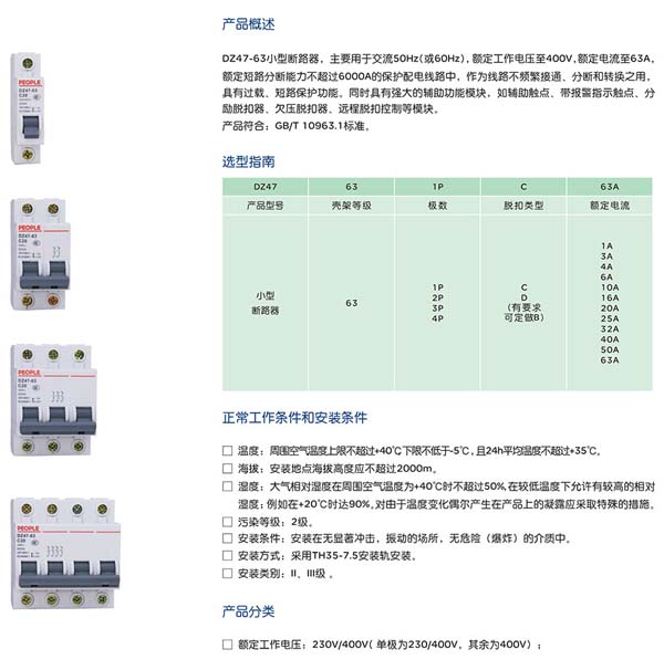 中国人民电器 PEOPLE DZ47-63 3P C型 小型断路器空气开关