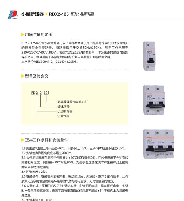 中国人民电器PEOPLE 断路器 小型断路器 RDX2-125 3P 125A 高分段小型断路器