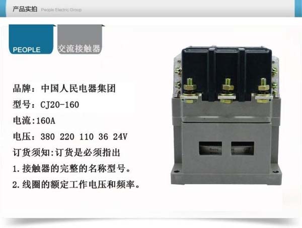 中国人民电器集团 PEOPLE CJ20-160A交流接触器