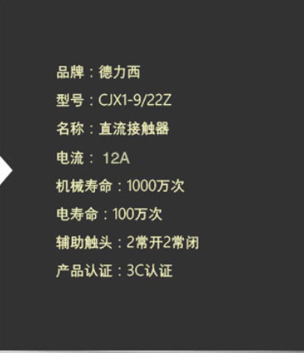 DELIXI德力西直流接触器24V CJX1-1222Z 24v 220V 额定12A 德力西直流接触器型号